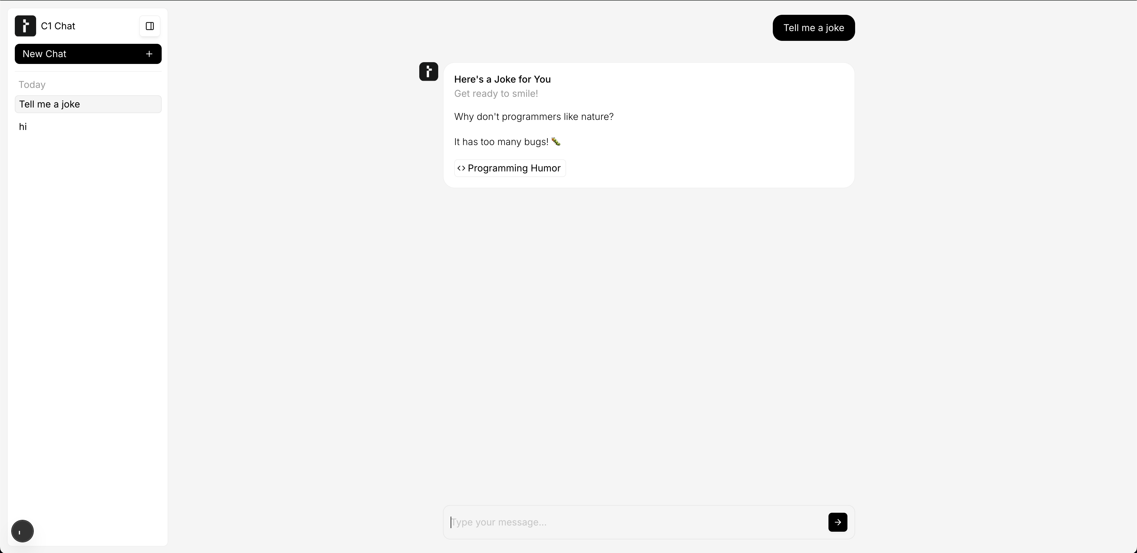 Add Chat Api route to use Thesys C1 Api along with functions in