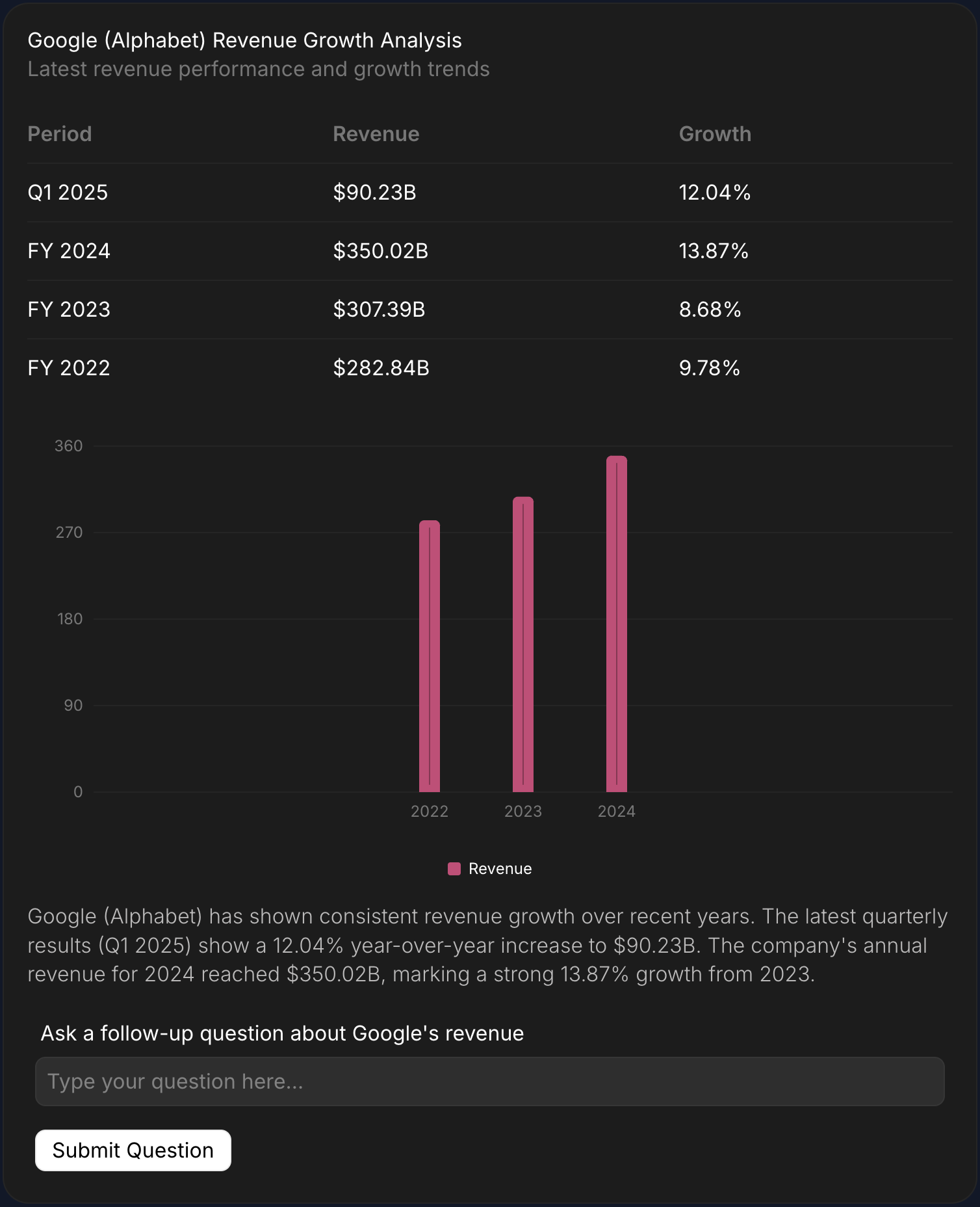 Use graphs to visualize quantitative information, like stock performance or revenue growth. | ![]() |